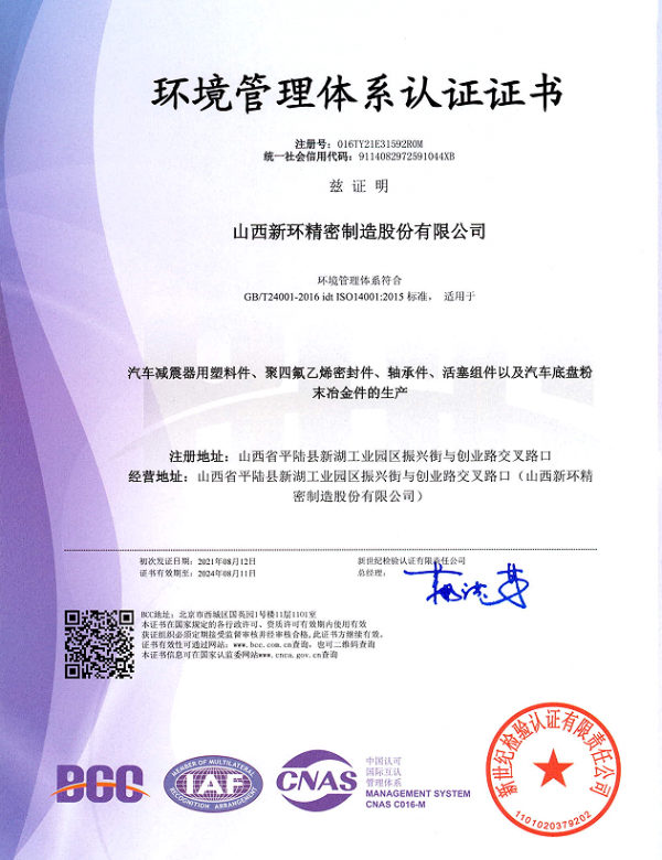 山西新環(huán)精密制造股份有限公司創(chuàng)建于1992年,是以研發(fā)、生產、銷售粉末冶金類、工程塑料類、橡膠制品類、氟塑類產品為主的高新技術企業(yè)。位于交通發(fā)達的山西省平陸縣城,距離三門峽市6 km,毗鄰隴海線,高鐵直達北京、上海、成都均為5小時左右,到達鄭州、西安皆為1小時,距離運城市機場35km。旗下子公司有:山西新環(huán)粉末冶金有限公司、山西新環(huán)科技有限公司、寧波新環(huán)氟塑料制品有限公司、寧波新環(huán)氟塑料制品有限公司軸業(yè)分公司、新勝達氟塑制品有限公司。現(xiàn)有高、精、尖設備120余臺套,固定資產總額1.8億元,年銷售額2.6億元。